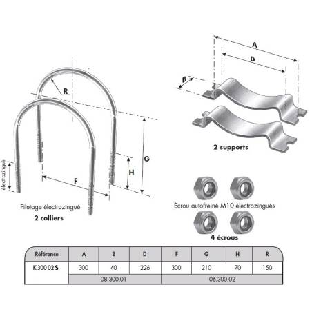 Kit 2 Colliers 2 Supports Ø300 - Version Longue RAL 9005